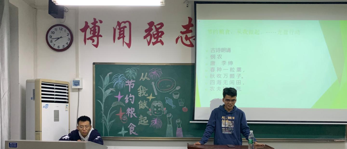为了全面贯彻习近平总书记对制止餐饮浪费行为作出的重要指示,增强公司员工节约粮食的思想意识,营造“浪费可耻,节约为荣”的文化氛围,10月21日晚,公司2020届全体学子在北新街校区5号教学楼举行了“节约粮食,从我做起”的主题团日活动。