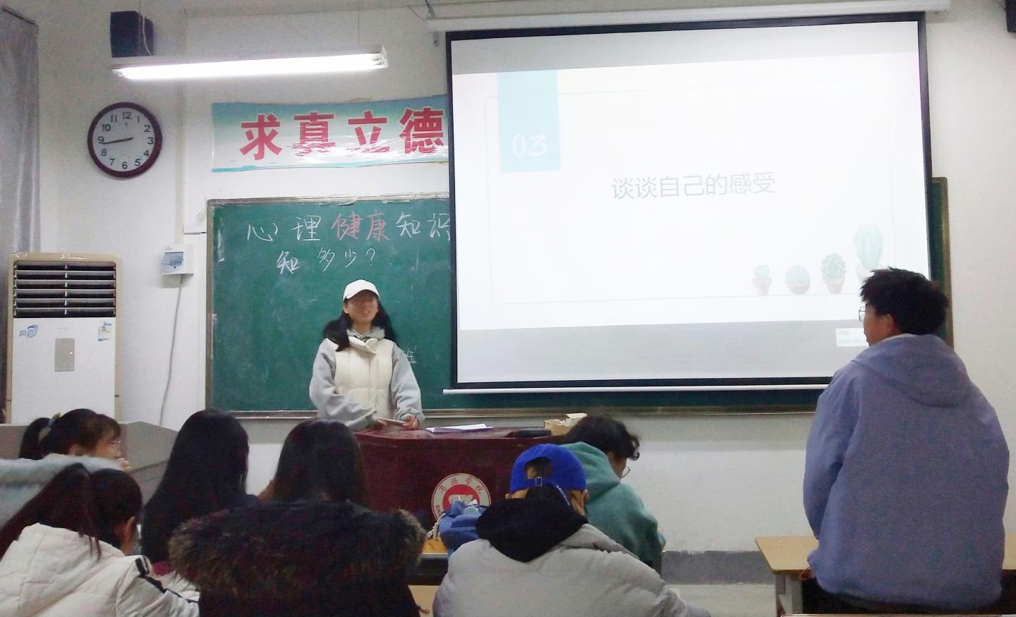 为进一步提高老员工的心理素质,提高老员工心理调节能力,增强心理保健意识,11月25日晚,公司2019级生物技术专业在五号楼502教室开展了“心理健康知识教育”主题班会,2019级生物技术全体员工参加了此次主题班会。班会由班级心理委员主持。