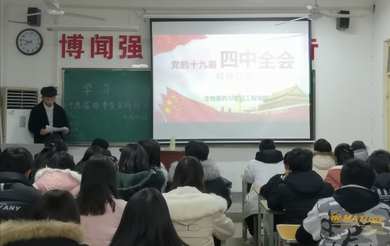 宣讲围绕十九届四中全会的三个重大意义、深刻领会全会精神和认真贯彻落实全会精神展开,重点围绕中国特色社会主义制度和国家治理体系的13个显著优势和“三步走”的总体目标进行了深刻阐述和解读。期间,各班还采用PPT、影视片段等形式,让同学们对十九届四中全会精神有了更深刻的认识。