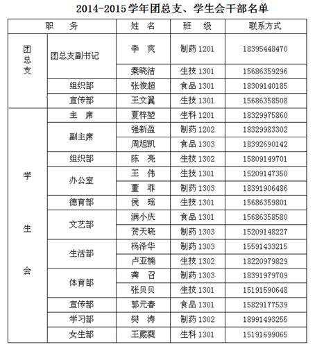 附:2014-2015学年团总支、员工会干部名单