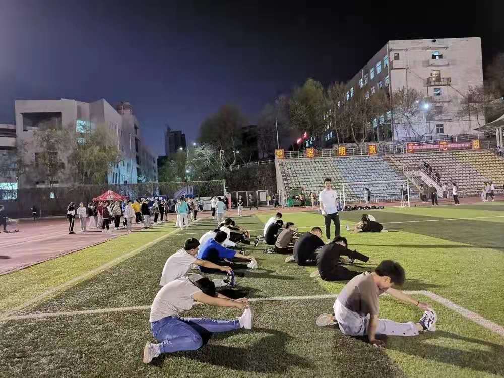 结束了一天课程的运动员们伴着夕阳来到了操场进行训练。晚上的训练往往强度较高,但大家都能咬牙坚持。
