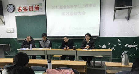 2018年1月5日上午10点,公司食品科学系2018届毕业生综合实习总结大会在5号教学楼多媒体13教室召开,会议由食品科学系主任胡选生博士主持,与会人员有实习指导老师王忙生老师、张晓虎教授,辅导员张俊华老师以及2014级食品科学与工程专业84名员工。
