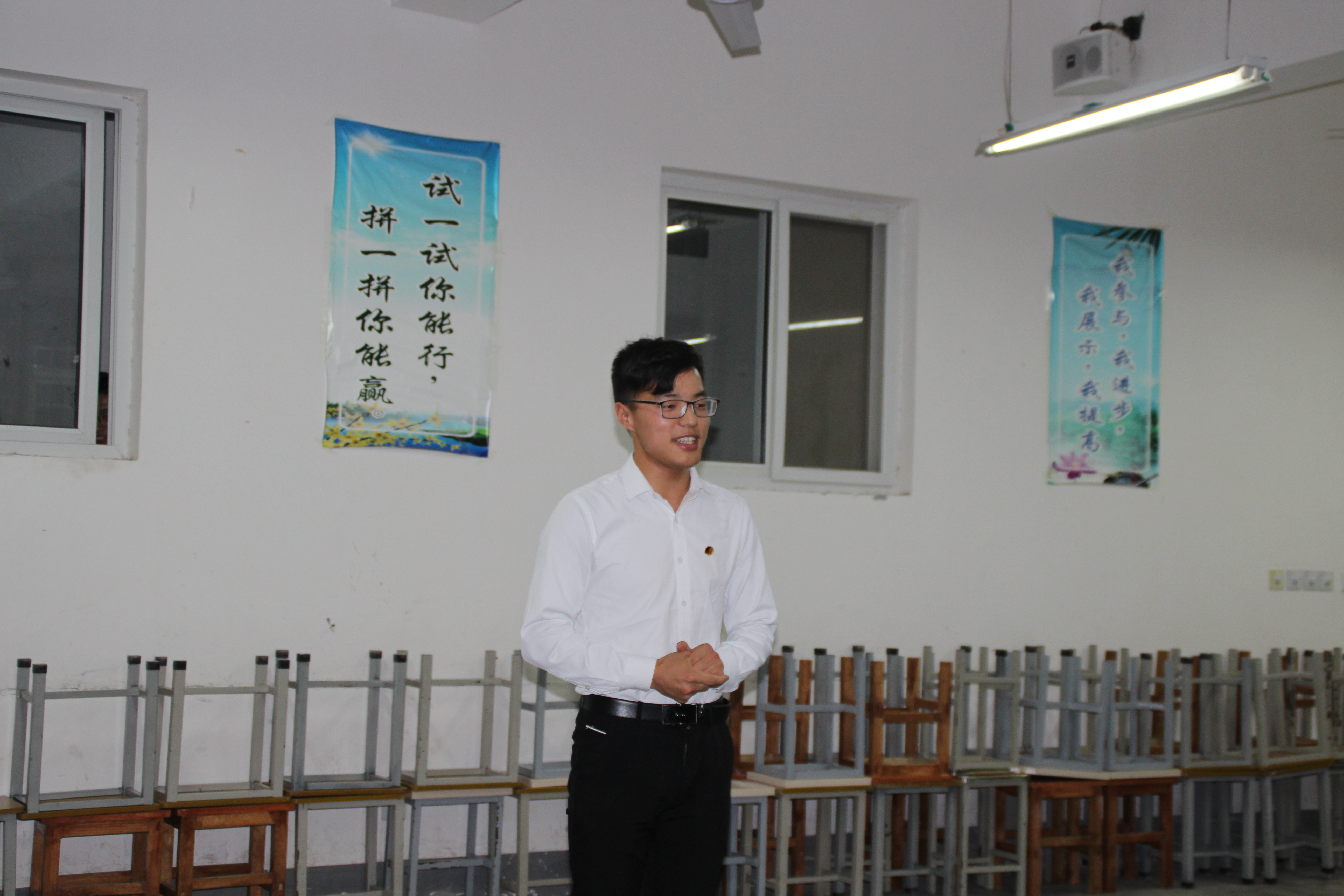 本次竞选分为自我介绍和回答问题两个环节。在自我介绍中包括阐述自己的优势和劣势,以及对所竞选部门职位的认识和本部门的工作设想;期间,面试的同学们需回答老师及员工干部提出的问题,每一位候选人以积极的态度表达了自己的想法。现场竞争气氛激烈,有条不紊,共历时5个小时,每一位候选人的表现可以用六个字总结:自信、勇敢、阳光。