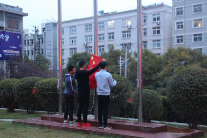 11月7日清晨,在一号楼前升旗台,公司举行了隆重的升国旗仪式。学工办主任王姗老师、公司本期发展对象及生物技术1702班全体员工参加了升旗仪式。
