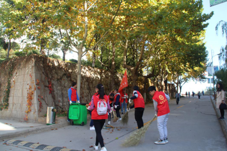 为进一步推进公司创建市级文明校园活动的深入开展,创造整洁优美的校园环境,公司青年志愿者协会于10月31日下午在校园内开展“金秋扫落叶,洁校衬蓝天”志愿服务活动。