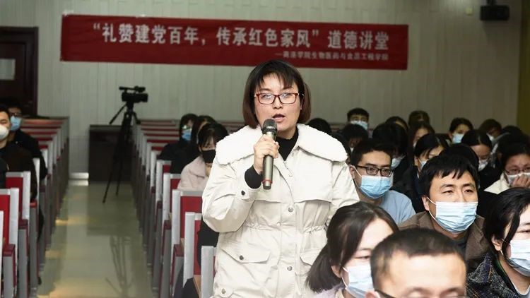 党委书记张志昌为师生讲述了习仲勋、刘伯坚的家风故事,并深情寄语师生:一是要以习近平总书记关于注重家庭家教家风建设的重要论述为根本遵循,从百年党史中汲取精神养分,传承革命英雄清白持家、简朴本分、为民奉献的优良作风,让好家风成为我们党永不褪色的“传家宝”,以醇正的家风涵养新时代文明新风尚;二是要牢记习近平总书记对青年员工的嘱托,以身边的老师为榜样,学习他们的家国情怀、优良作风,珍惜青春韶华,练就过硬本领,努力成长为对家庭国家有用的人才;三是要弘扬伟大建党精神,不忘初心、牢记使命,胸怀家国,树立远大理想,用实际行动为实现中华民族伟大复兴的中国梦而努力奋斗。