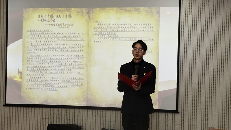 红色家书映照初心,革命情怀感人肺腑。由杨政同学诵读的《红色家书》之《刘伯坚写给家属至亲的信》,感动了在场所有人员。