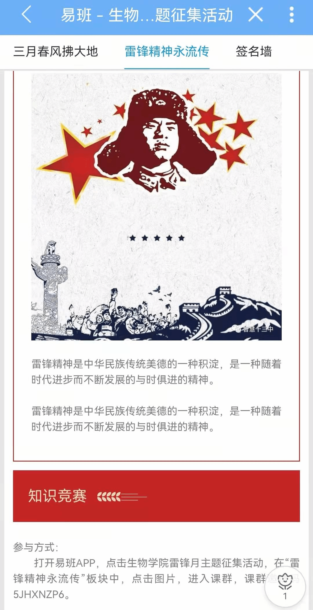 易班微社区雷锋月征文活动