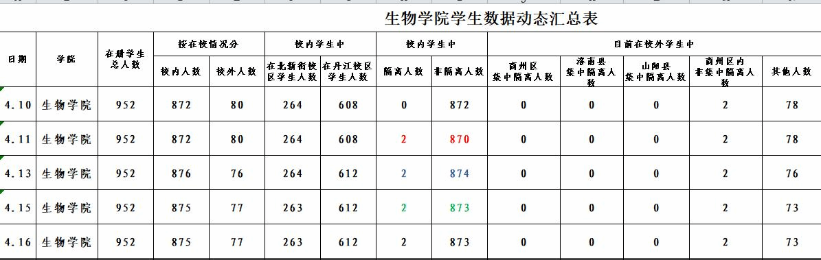 员工工作组、信息统计组逐人列出清单,第一时间统计出952名员工、57名职工的所在地及近期行程,掌握师生的当前状态,做到“人数清、状态明”。安排专人每日定时报送师生员工健康台账、隔离台账、体温监测、全员核酸参与情况等数据,做到准确无误。在跨校区管理人手不够的情况下,3名青年教师主动请缨,奔赴在一线承担起北新街校区264名2021级员工的管理服务工作,两校区联动按照“采样前逐人签到”“采样后收缴报告”双向并行方式确保员工核酸检测不漏一人。