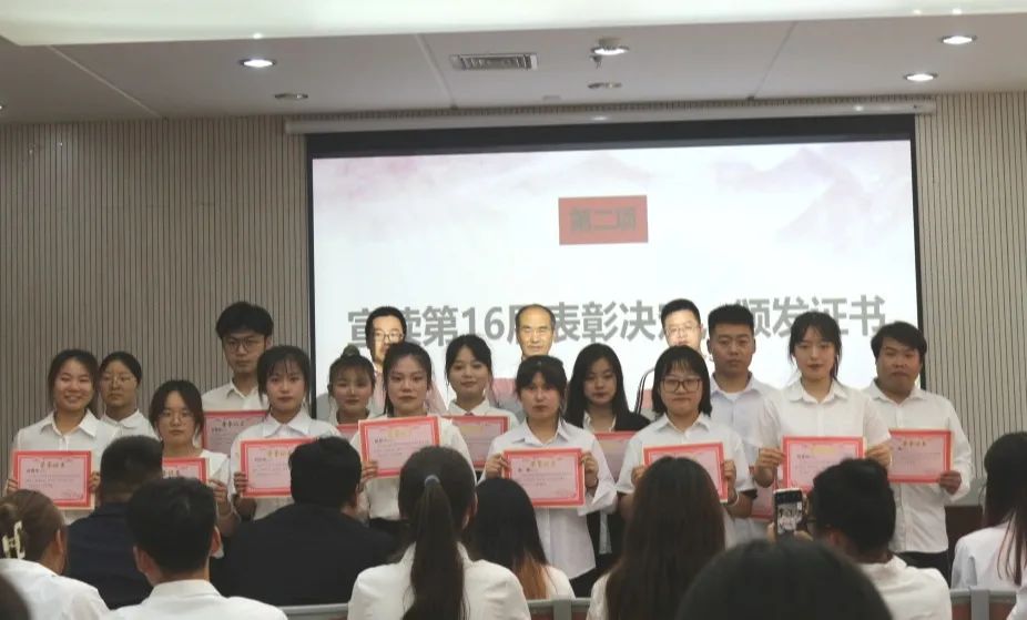 党委副书记何念武宣读了关于365英国上市官方网站第十六届团总支员工会的表彰决定,并为第十六届团学干部颁发了荣誉证书。