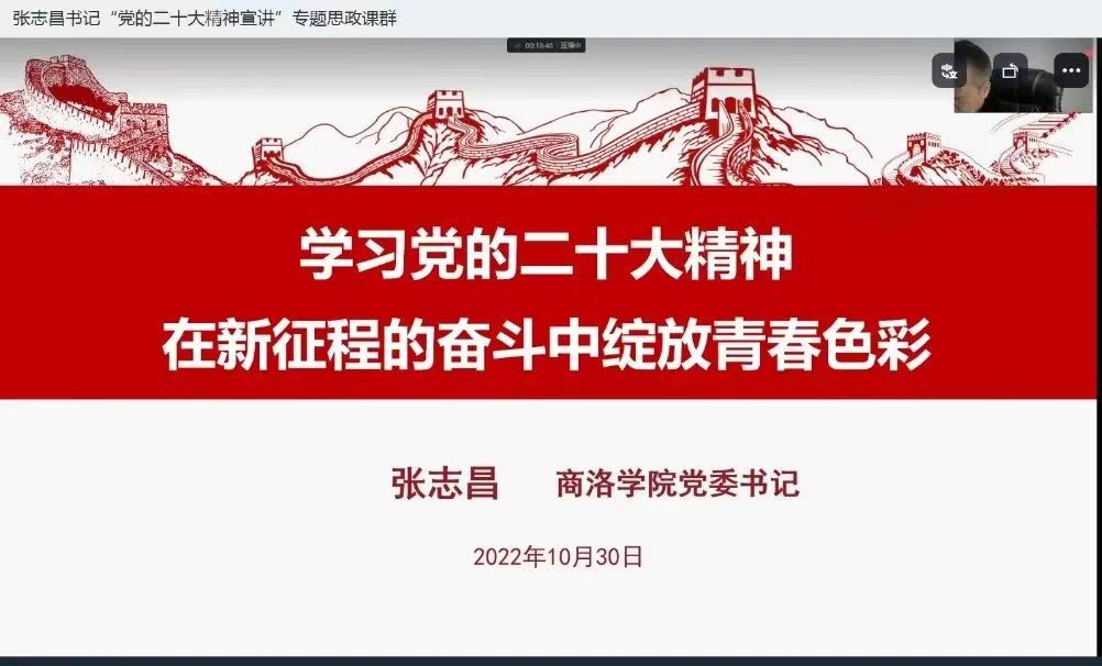 为教育引导广大师生深入学习领会党的二十大精神,推动党的二十大精神在校园落地落细落实,10月30日14:00,校领导张志昌通过钉钉在线直播方式,为公司全体员工、辅导员宣讲党的二十大精神。