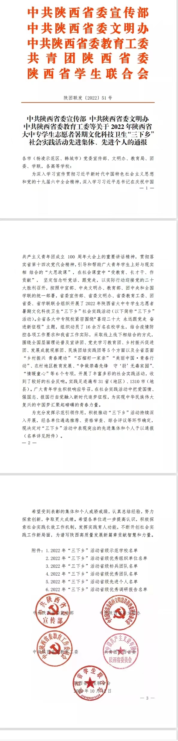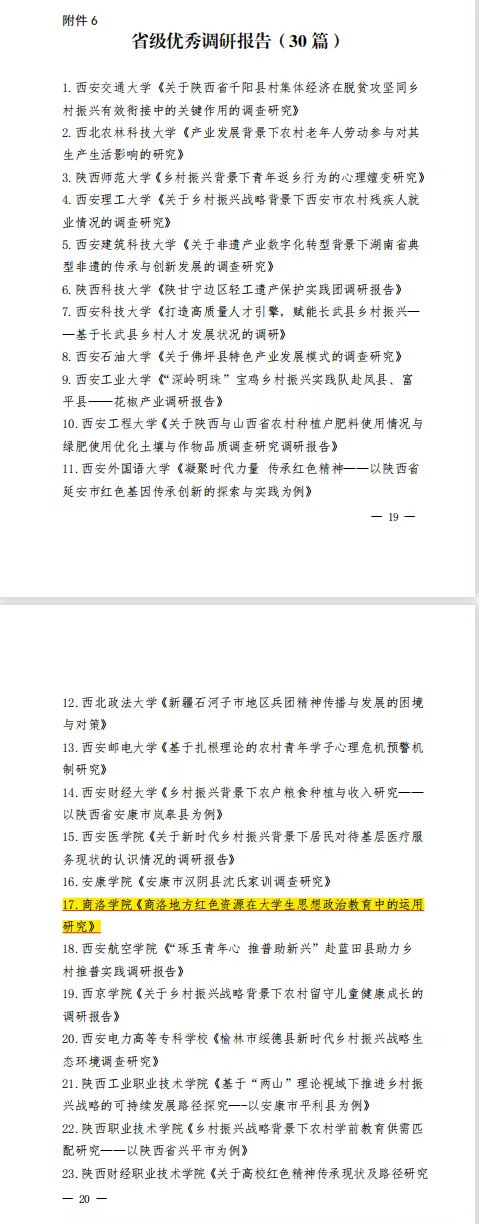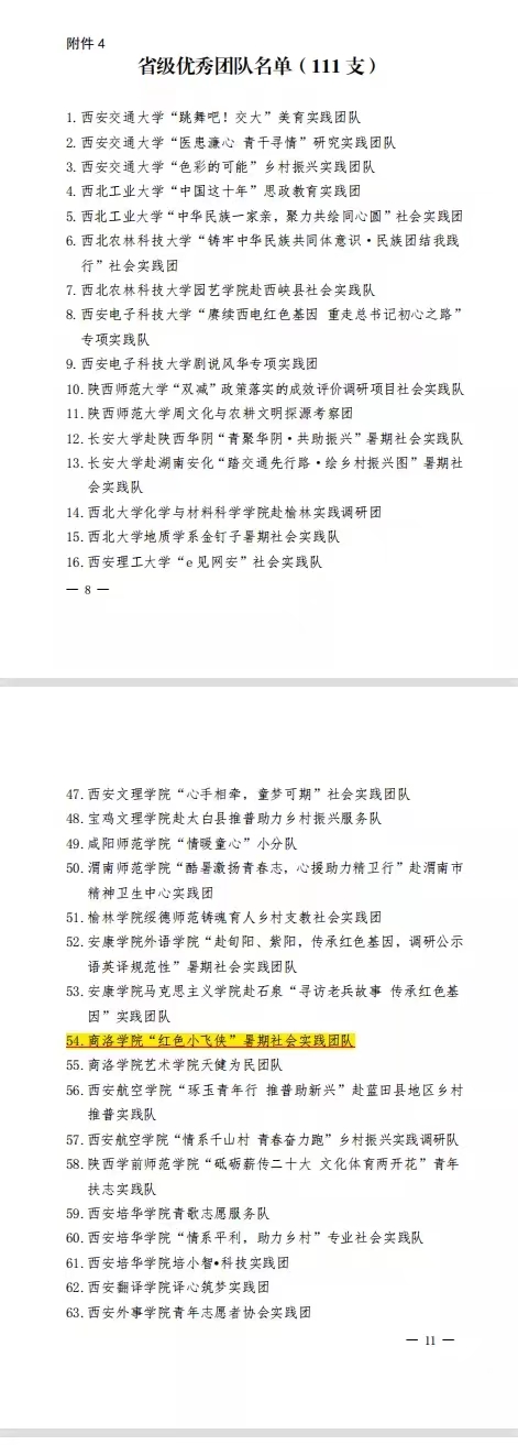 在陕西省委宣传部、省文明办、省教育工委、团省委、省学联组织的暑期“三下乡”社会实践活动评选中,公司“红色小飞侠”暑期社会实践团队被评为省级“优秀团队”,公司教师赵利君荣获省级“先进个人”称号,其指导的调研报告《商洛地方红色资源在老员工思想政治教育中的运用研究》被评为省级“优秀调研报告”,并获得专项资助。