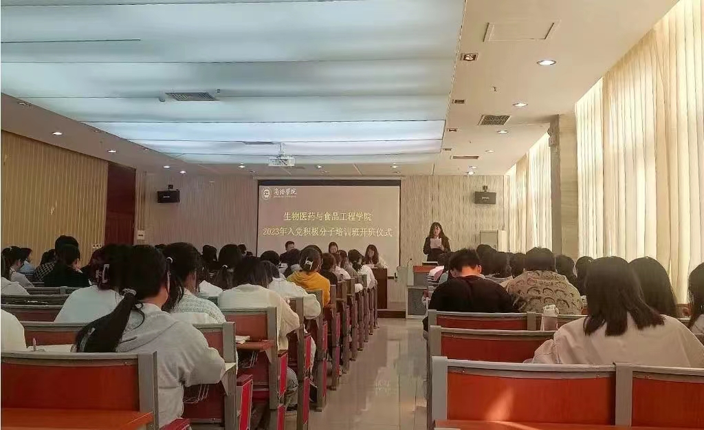 食品2101班张一格作为学员代表发言,郑重承诺按时上课,认真听讲,仔细做好笔记,严格遵守纪律,树立入党积极分子良好形象;严格按照党员标准要求自己,积极向党组织靠拢,反思不足、完善自我,把自己锻炼成符合党和人民期望的合格的社会主义建设者和接班人。