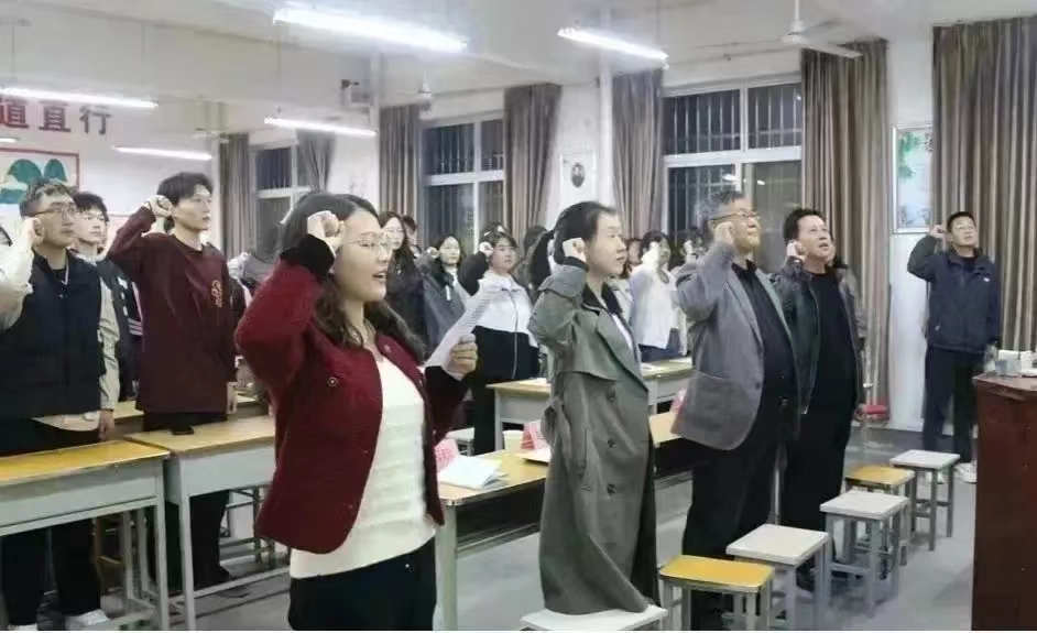 在2022级辅导员伏云珍老师的带领下,全体与会人员进行了《珍爱生命,激扬青春》宣誓。