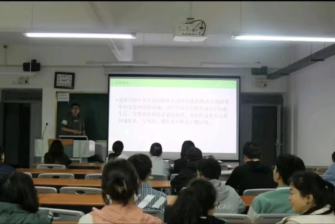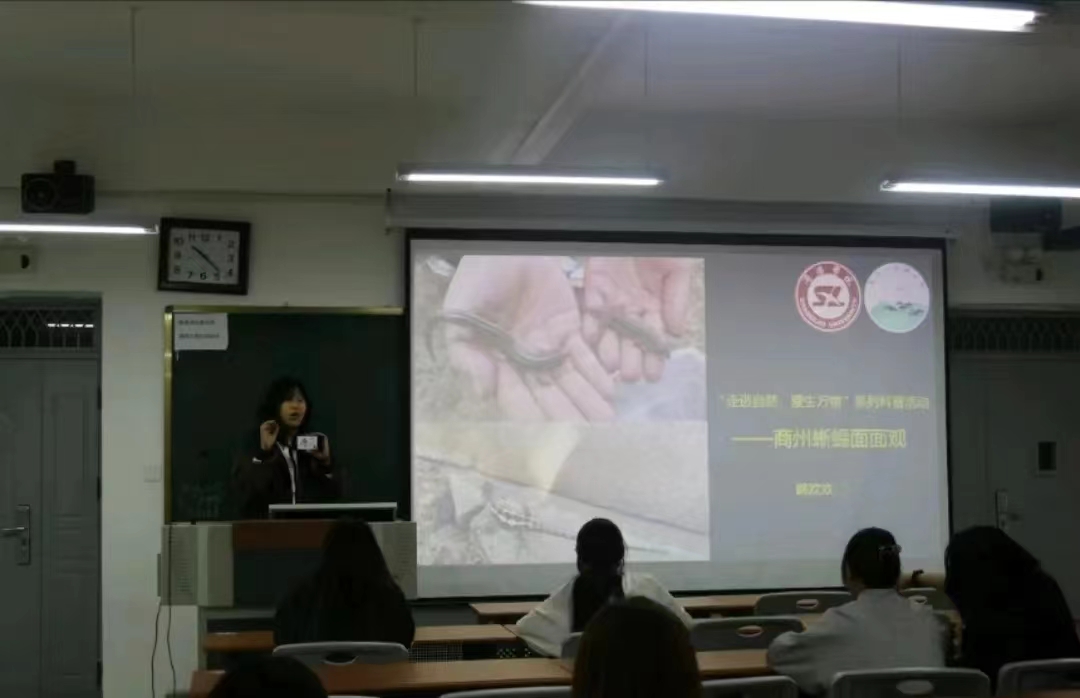 同学们在丹江校区5号楼410教室参加商洛地区蜥蜴知识的科普讲解活动,自然科普讲解员讲解蜥蜴的饲养和互动要点后,同学们与蜥蜴自由互动和拍照。