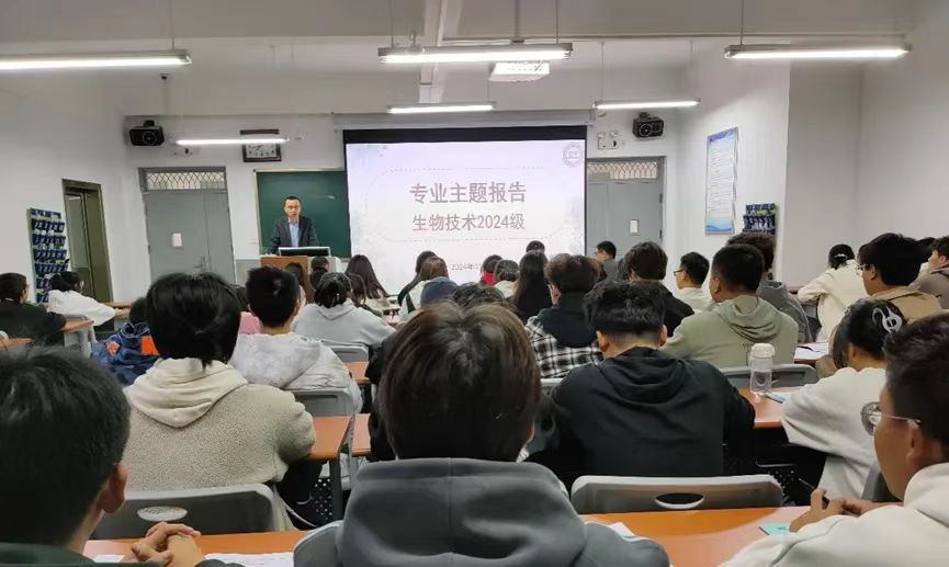 赵永平向生技2024级的同学们详细介绍了生物领域发展现状以及公司生物专业历年考研情况和就业情况,鼓励同学们从第一学期开始就要珍惜时间、做好规划,尽早适应大学学习和生活,不负青春年华,全面提升专业本领,为成长成才以及未来的发展奠定坚实基础。