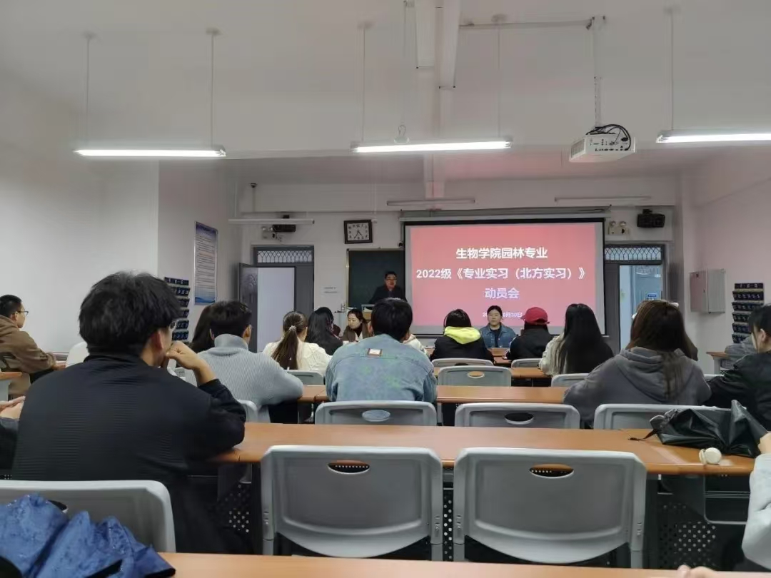 10月30日下午,公司召开2022级园林专业(北方园林实习)动员会,公司党委副书记何念武、园林专业何欣老师、辅导员伏云珍老师和2022级园林专业46名员工参会,会议由园林系韩欢欢老师主持。
