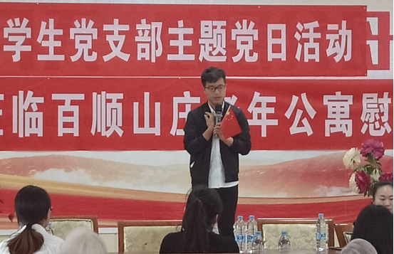 4月24日下午,公司员工党支部会同公司青年志愿者协会前往百顺山庄敬老院开展“忆党史、强党性、做先锋”主题党日暨志愿服务活动。员工第二党支部书记、团总支书记侯小洁老师,员工第一党支部书记张俊华老师,全体员工党员和部分志愿者参加了本次活动。本次活动由志愿者张云鹏、刘亚楠同学主持。