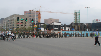 随着军训拉练的开始,新生们在军训教官和老师的带领下,向着丹江校区前进。拉练途中,新生队列抬头挺胸,迈着整齐的步伐一同前进。王姗老师和张俊华老师在途中始终紧跟在队伍的旁边,时刻注意着新生的安全,为此次拉练保驾护航。