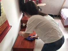 活动伊始,队员们精神饱满,井然有序地向光荣院前行。到达目的地后,身着军装的老人们进入志愿者们的视线,他们围成一团,下象棋、打牌、聊天。老人们在看到志愿者们之后,纷纷热情地招待大家。在护工的带领下,志愿者们来到了老人们的房间,主动帮助老人收拾房间、打扫卫生。