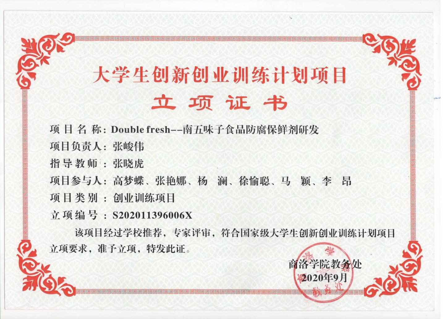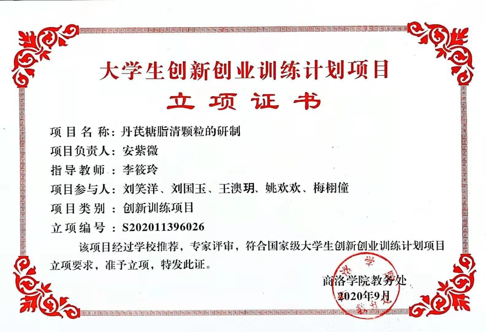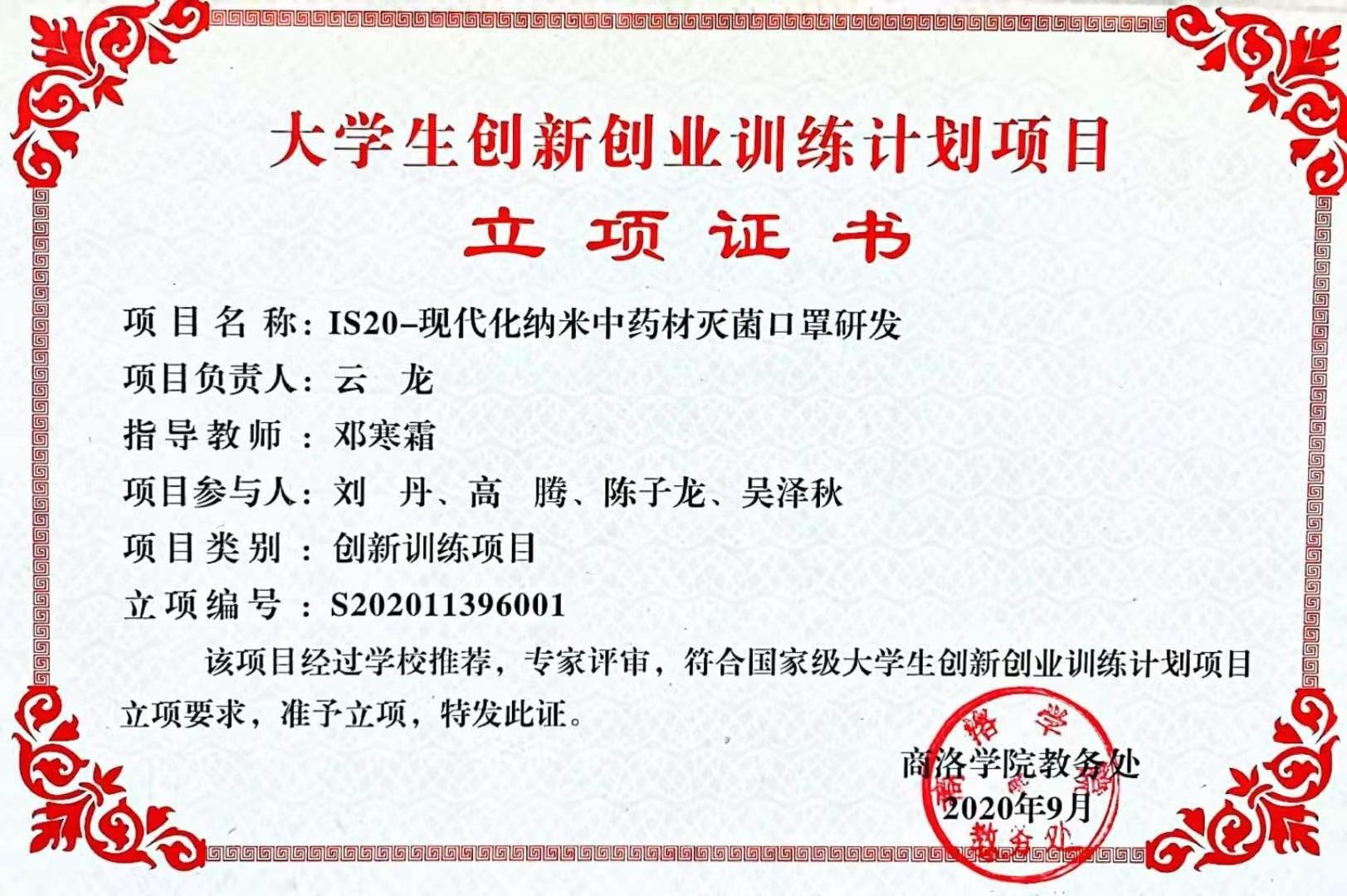 我支部张晓虎、邓寒霜、李筱玲、张亦琳等4位教师分别指导员工申报的《Double fresh--南五味子食品防腐保鲜剂研发》《IS20-现代化纳米中药材灭菌口罩研发》《丹芪糖脂清颗粒的研制》《中药单体β-内酰胺酶抑制剂的筛选》项目获2020年度国家老员工创新创业计划立项。