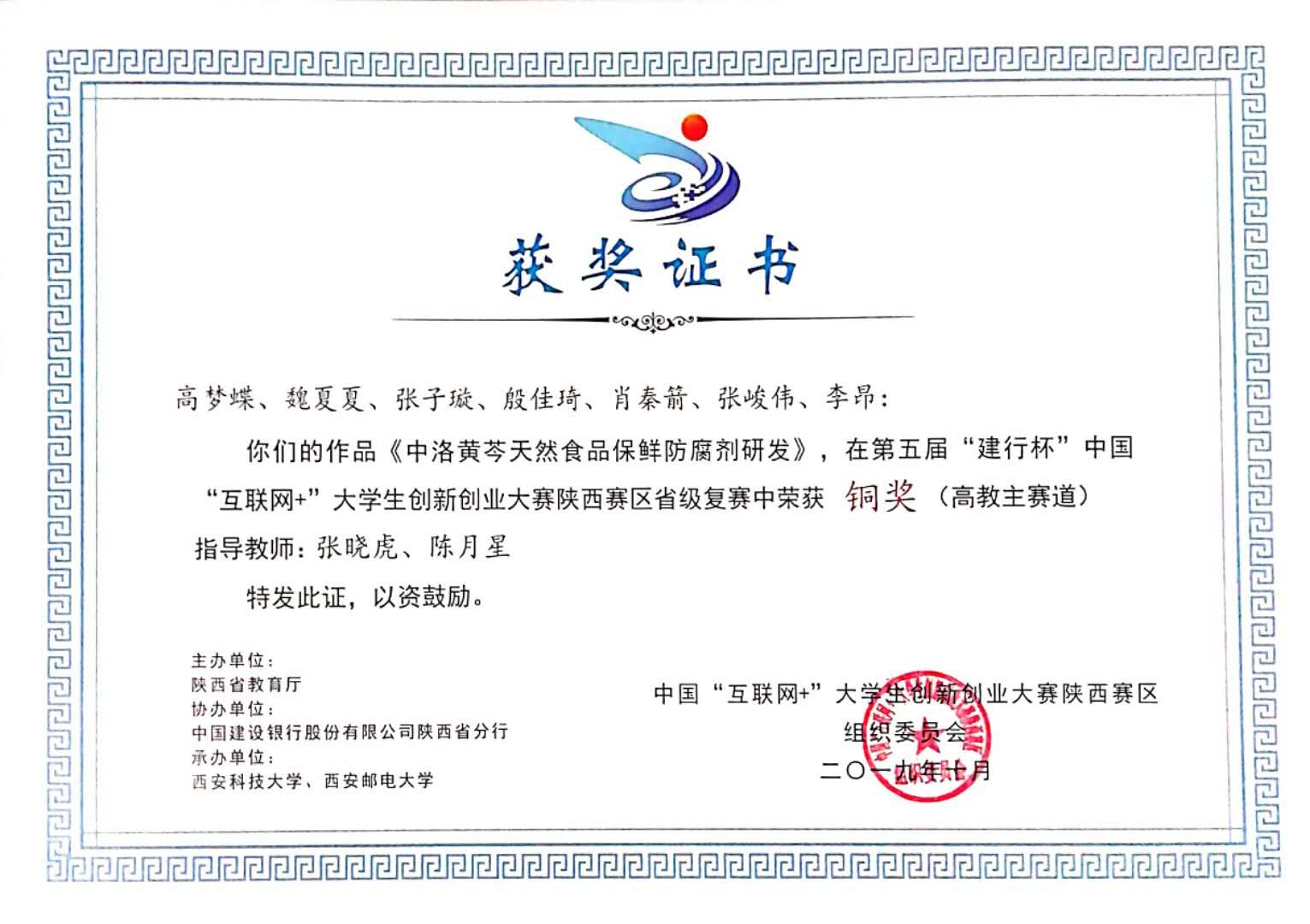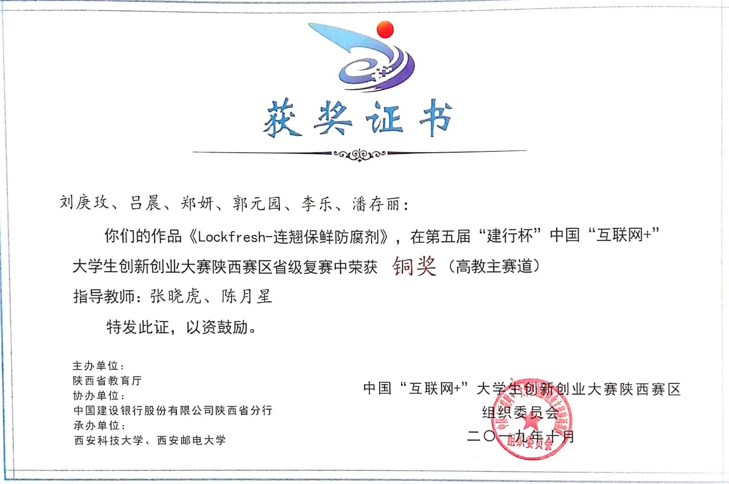 支部张晓虎教授、陈月星博士两位老师共同指导员工完成的《中洛黄芩天然食品保鲜防腐剂研发》《Lock fresh-连翘保鲜防腐剂》2个项目,双双继荣获365英国上市公司第五届“互联网+”大赛校级金奖后,又获省级复赛铜奖。这是我支部教师员工培养工作取得的又一标志性成果。