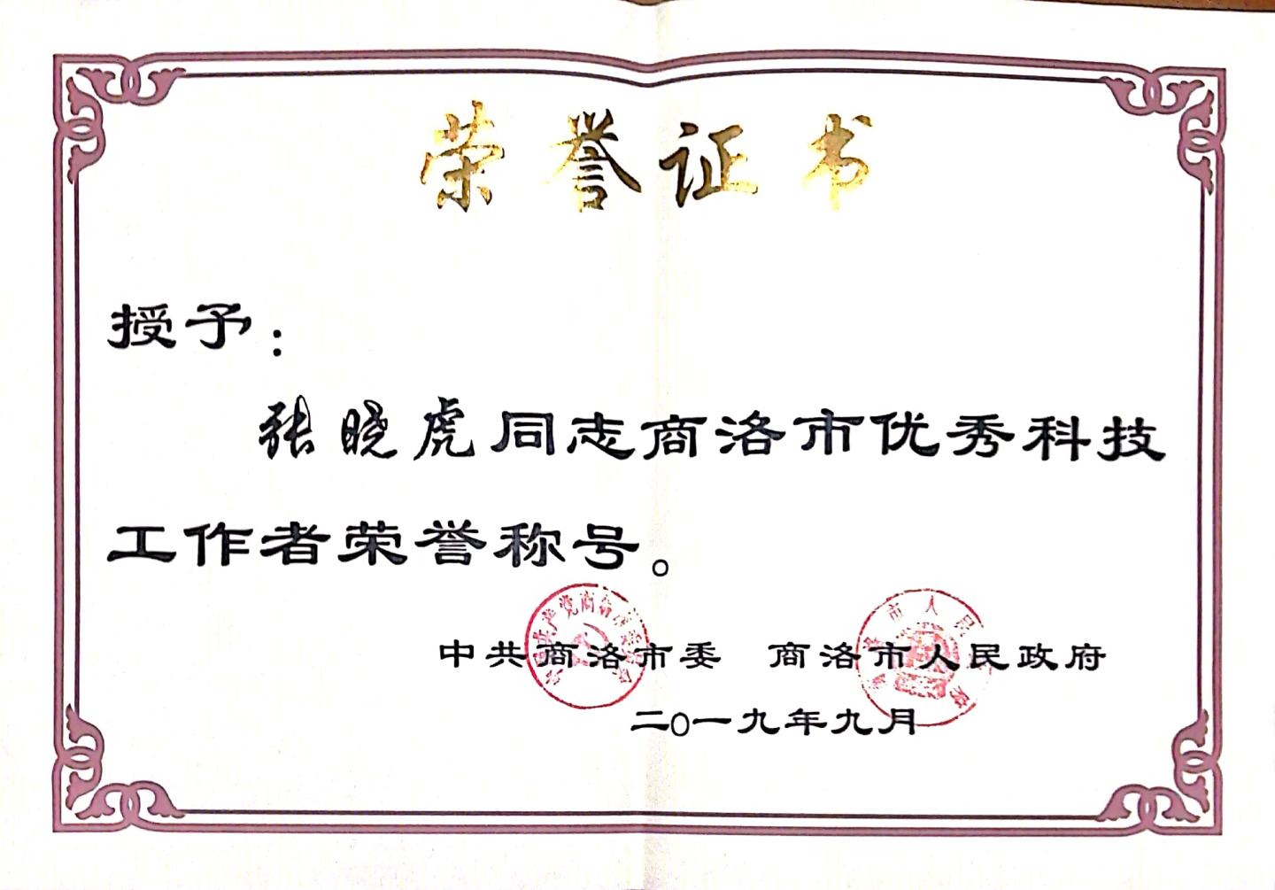 张晓虎教授获“商洛市优秀科技工作者”荣誉称号