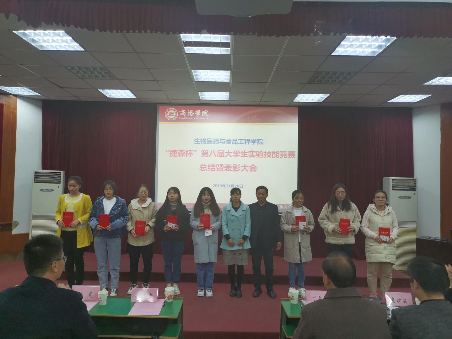 表彰会上,公司总支书记丁争尚、教务处副处长高扩昌、捷森科学发展有限公司经理杨昊、公司各系主任获奖选手颁发荣誉证书及奖品。