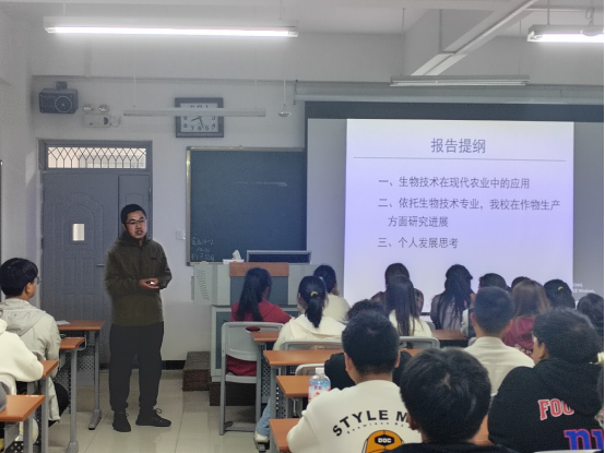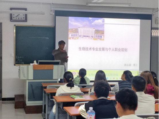 10月10日,公司生命科学系对生物技术2024级新生开展了第一场专业教育。赵志新老师和张军老师分别以“生物技术专业发展与个人职业规划”和“生物技术赋能现代农业高质量发展”为题为同学们进行了报告。