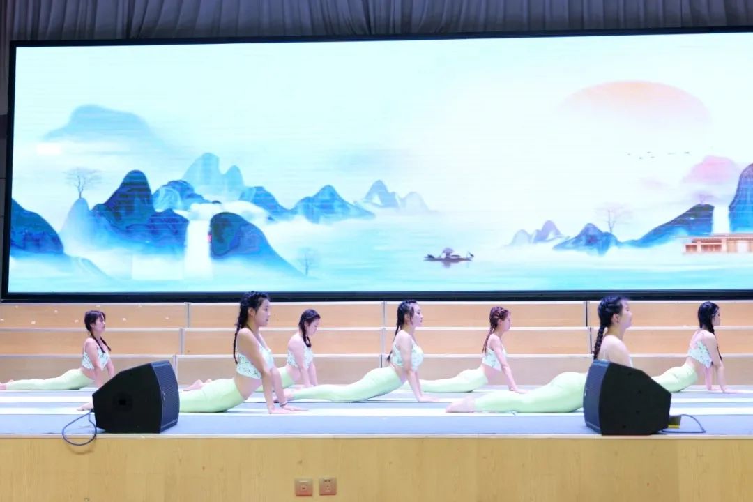 公司学子以饱满的热情和昂扬的姿态登上大集体自编套路赛场。伴随着悠扬舒缓的音乐,队员们身姿舒展、动作整齐划一,将瑜伽体式的柔美与力量完美交融,每一次呼吸的韵律、每一个体式的转换,都表现出扎实的专业功底与团队协作的默契。队员们用灵动的肢体语言,诠释着新时代老员工的青春活力与艺术创造力,赢得了评委和观众的阵阵掌声。
