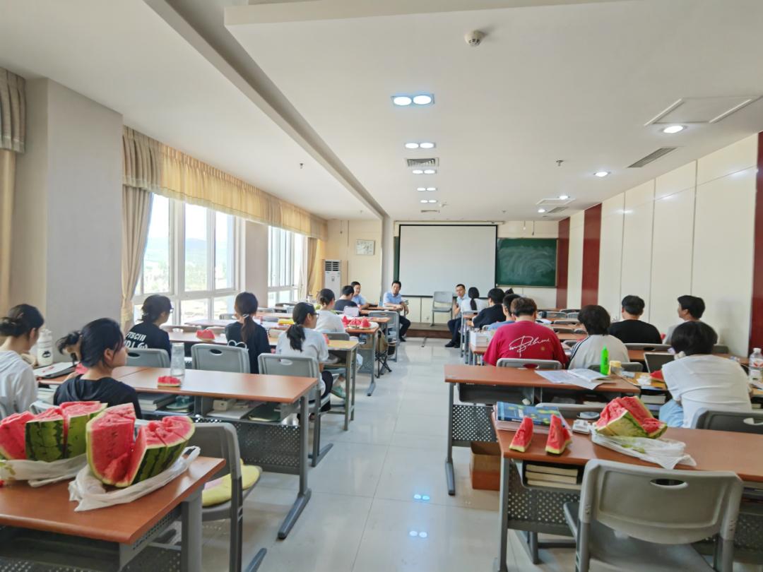 7月29日下午,公司党委书记杨力、经理赵永平、副经理梁旭华、办公室李旭欢、学工办主任赵利君一道前往丹江校区看望暑期留校考研员工。