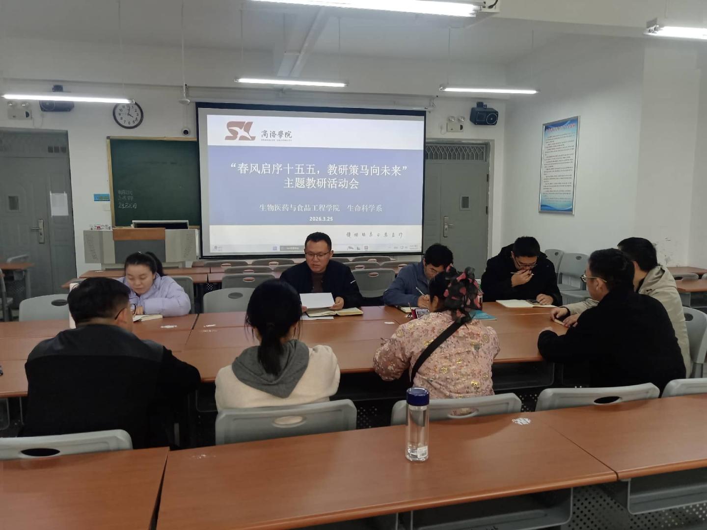 为深入贯彻公司教学工作部署,抢抓“十五五”发展规划开局关键契机,全面提升教学教研水平,推动系部专业建设高质量发展,3月25日,生命科学系召开“春风启序十五五,教研策马向未来”主题教学研讨会。系全体教师参会,会议由系主任华智锐主持。