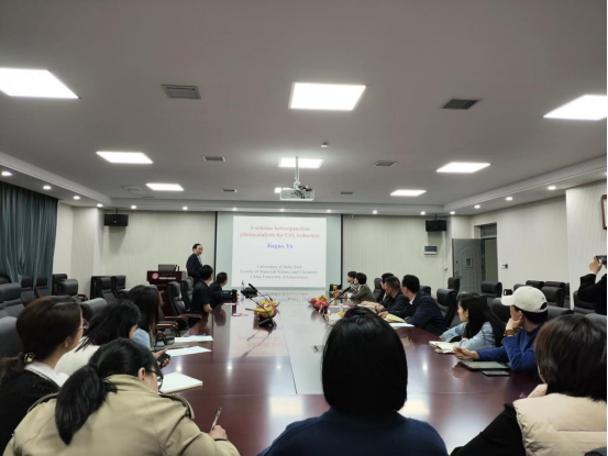 转换所面临的机遇挑战和关键科学问题,着重介绍了梯形(S型)异质结、无机有机复合梯形光催化剂的研究进展。余家国教授还与在坐师生就报告中相关内容进行了深入的讨论交流,并就大家关切关注的如何建设一流学科、培养学术骨干、教学与科研并重、组建学术团队以及有组织的开展科学研究等相关问题一一作了解答。整场报告深入浅出,气氛活跃,余教授无私分享自身多年来的经验感悟令在座的师生受益匪浅,备受鼓舞。