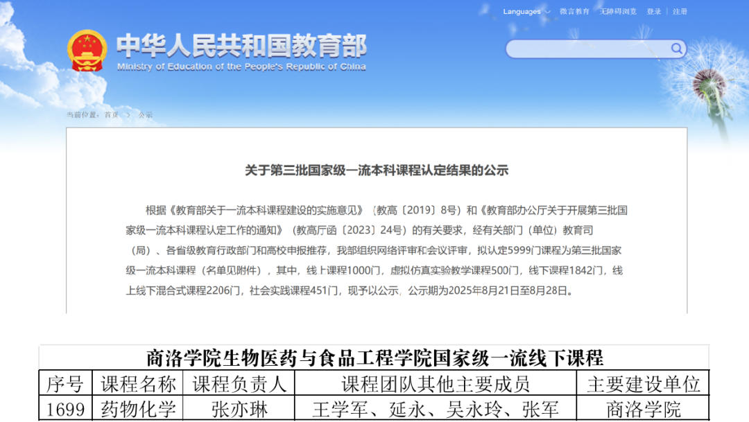 近日,教育部公示了第三批国家级一流本科课程认定结果,公司张亦琳博士负责的《药物化学》课程成功入选国家级线下一流课程,实现了公司在国家级课程中“零”的突破,标志着公司课程建设与教学质量迈入国家级高水平行列。